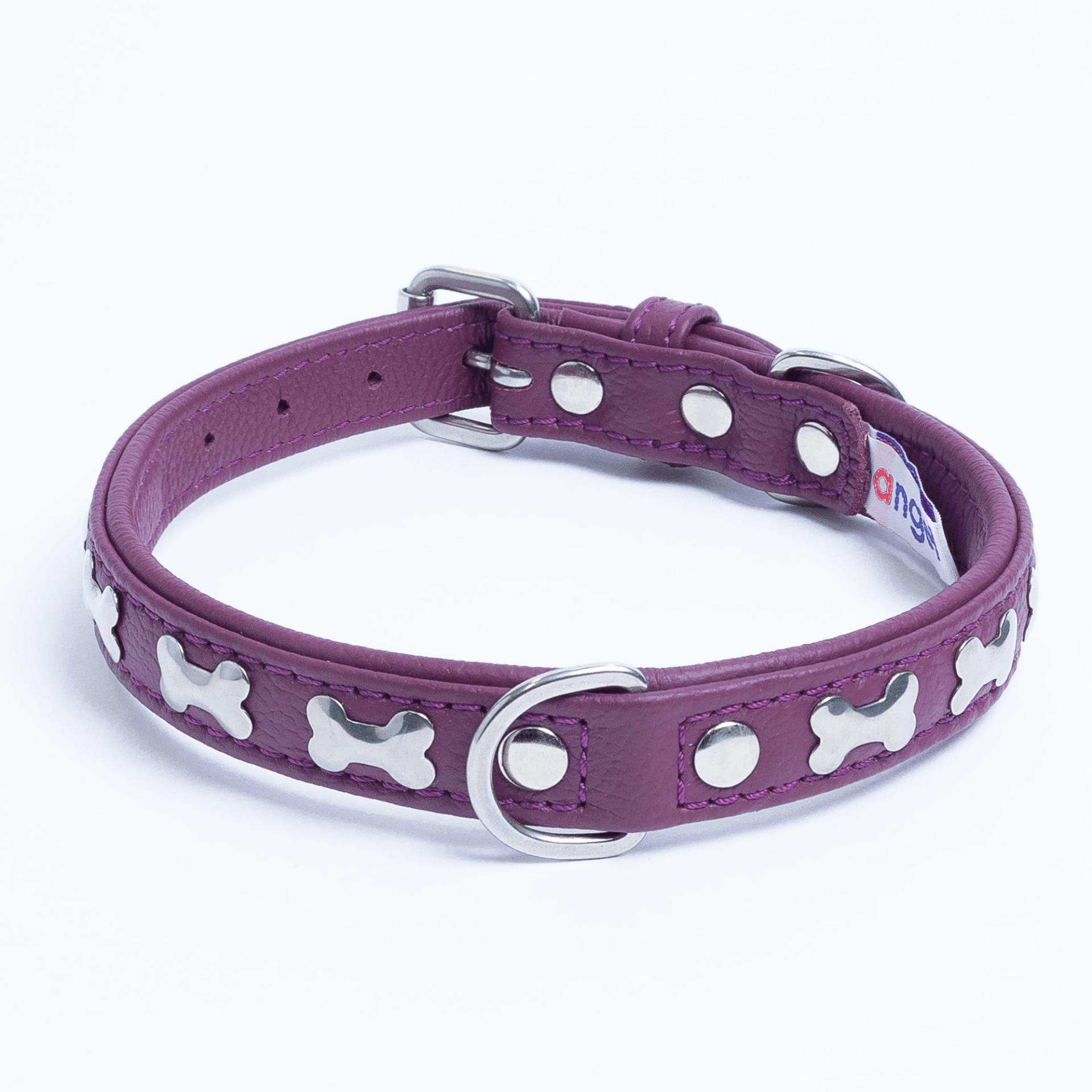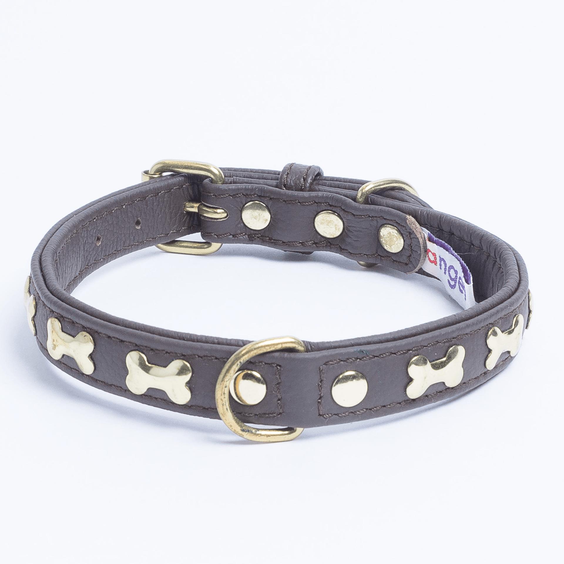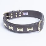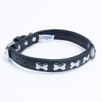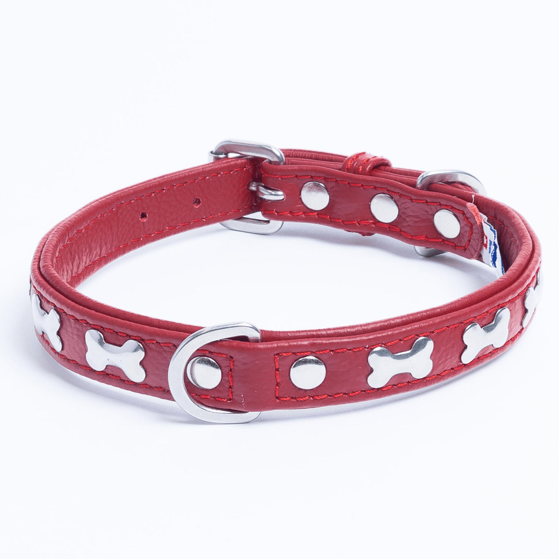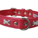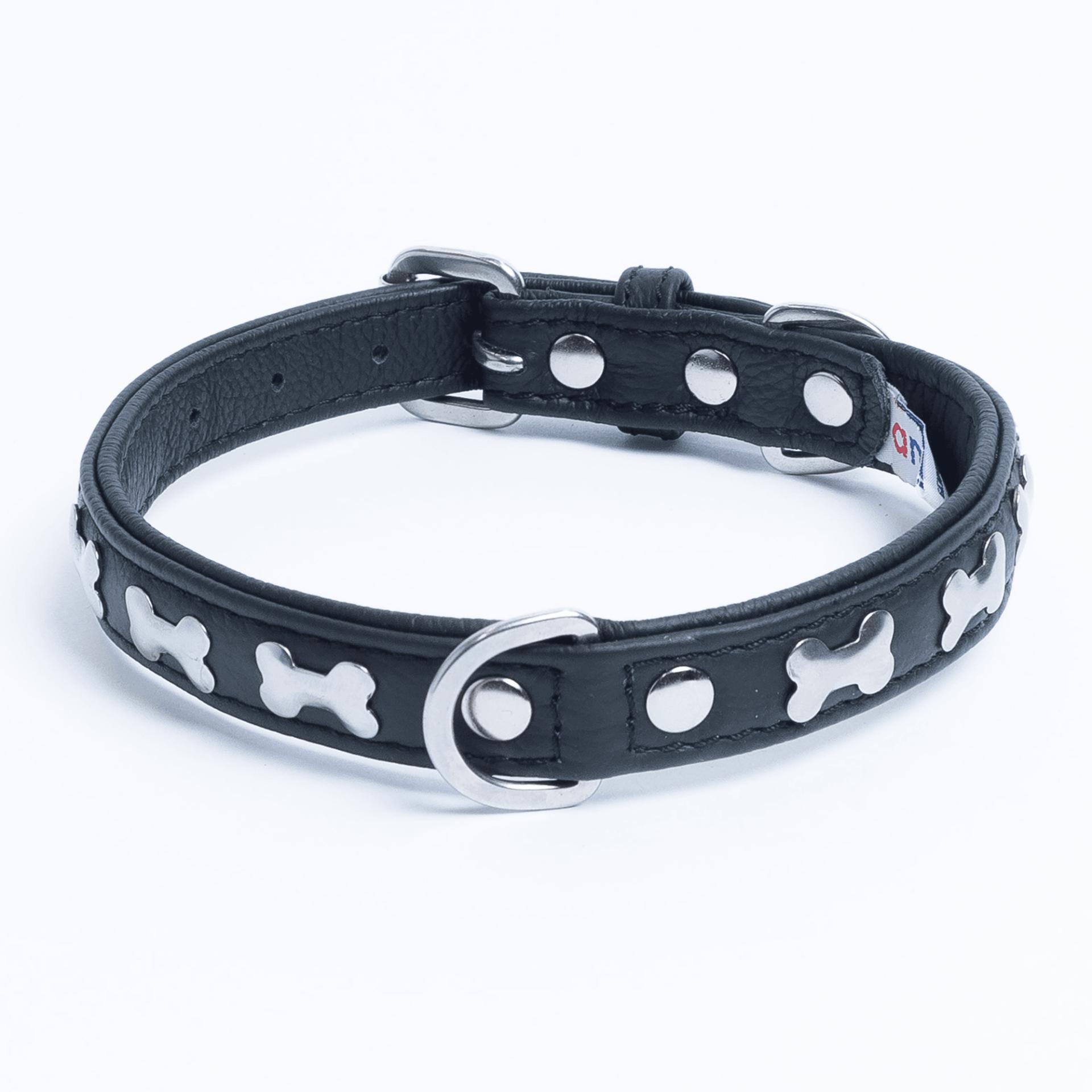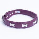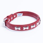 Accent your dog with this classic metal bone- fitted collection. Perfect for any breed, small or large, male or female. Constructed with a centre d-ring for maximum control and exposure, this collection ranks as one of our best sellers. Made from super soft genuine leather and stainless steel hardware.