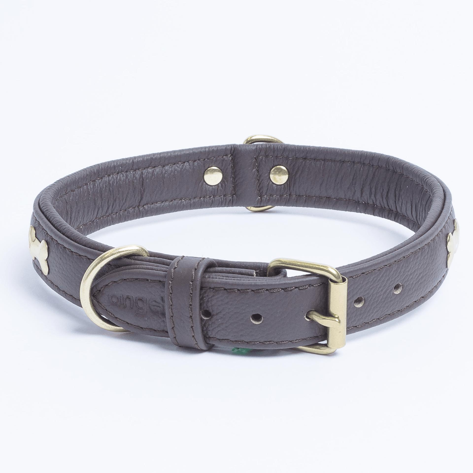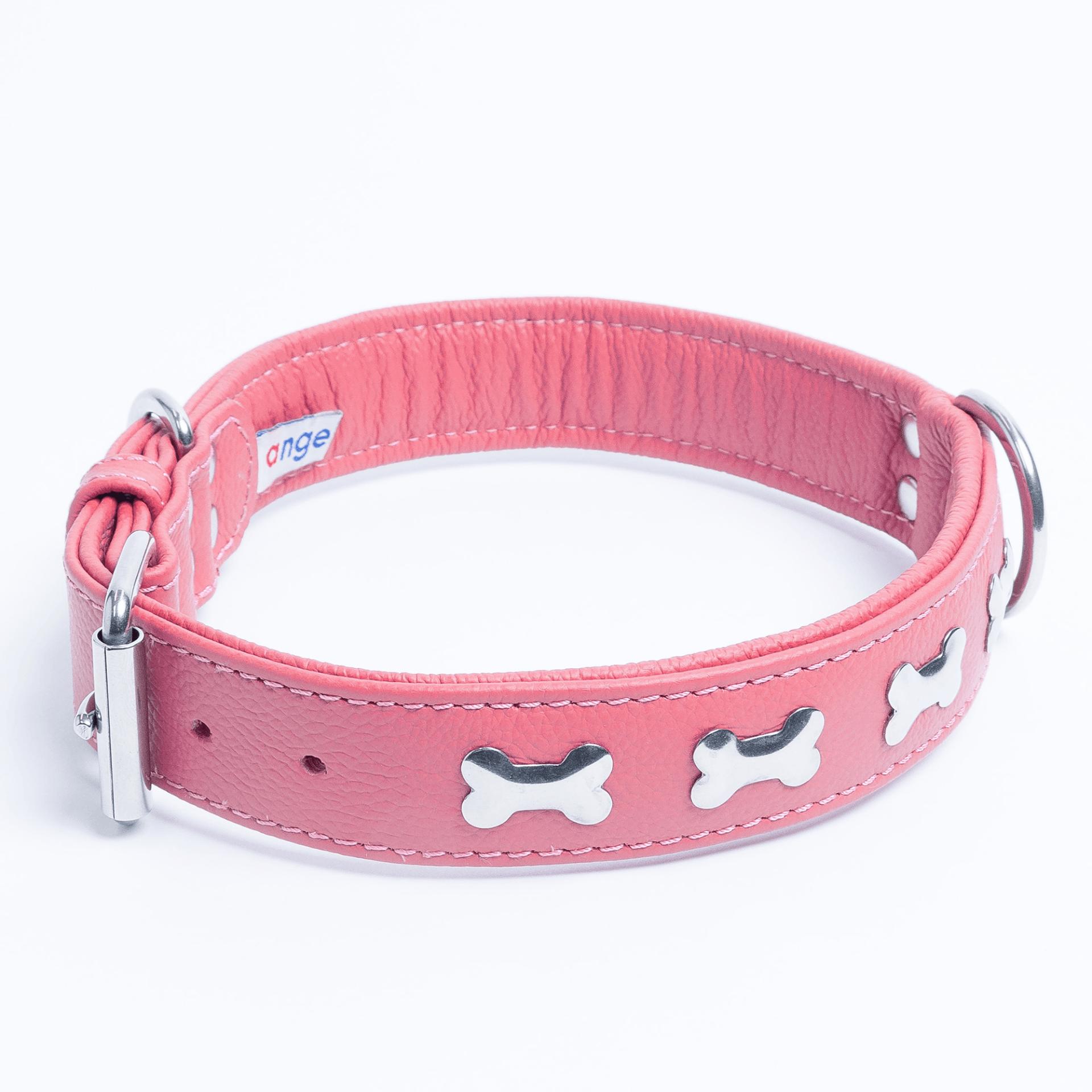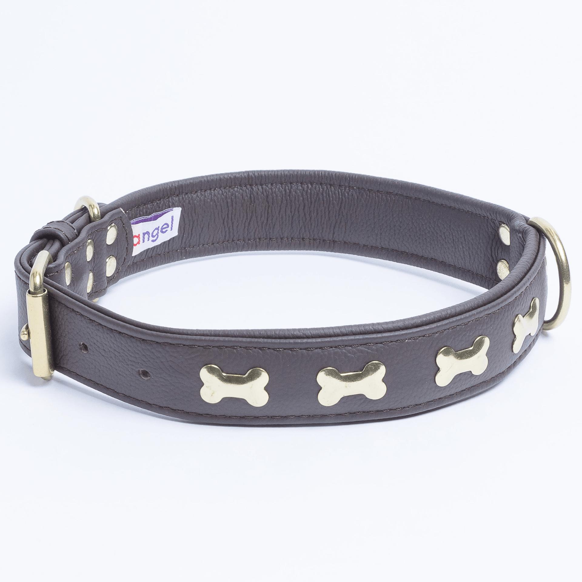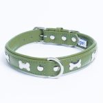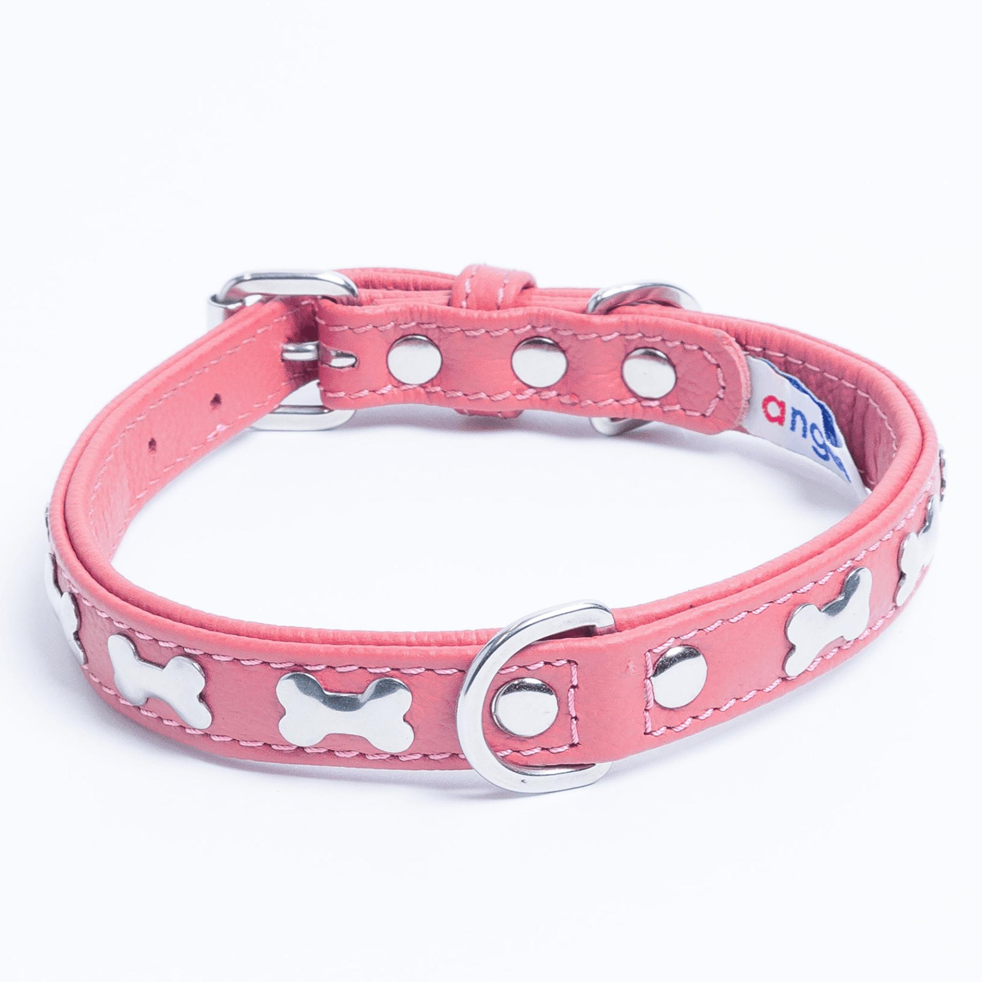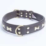 Accent your dog with this classic metal bone- fitted collection. Perfect for any breed, small or large, male or female. Constructed with a centre d-ring for maximum control and exposure, this collection ranks as one of our best sellers. Made from super soft genuine leather and stainless steel hardware.