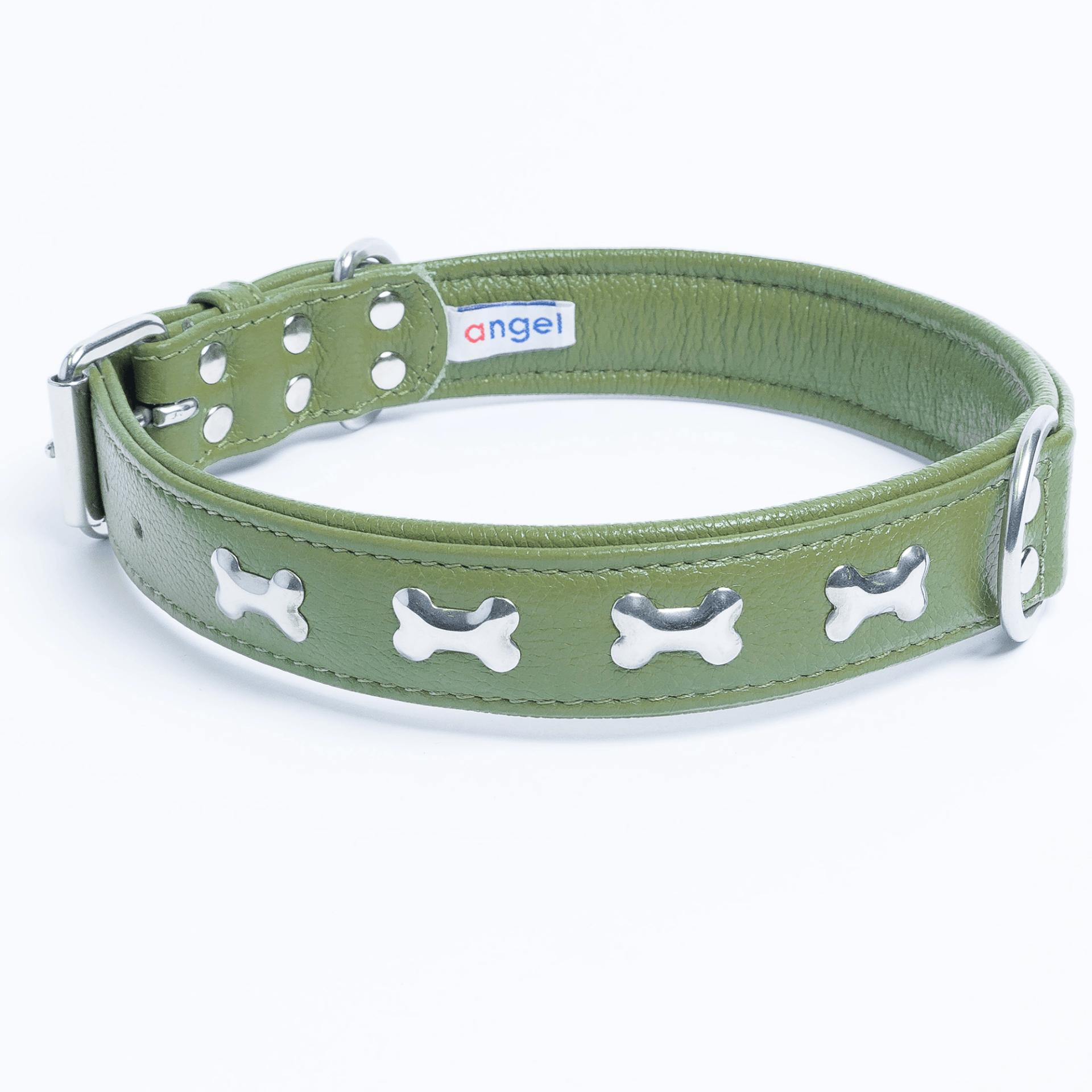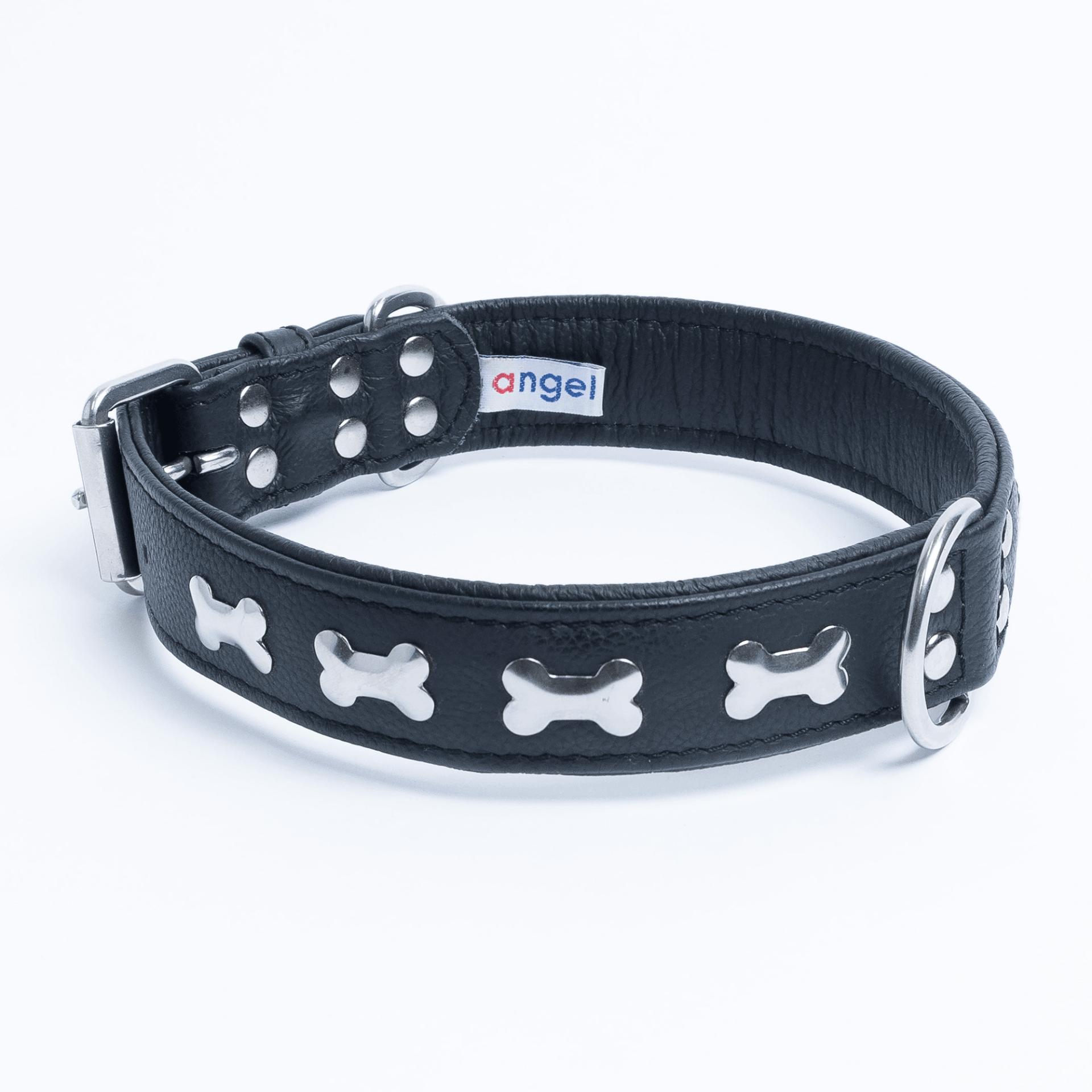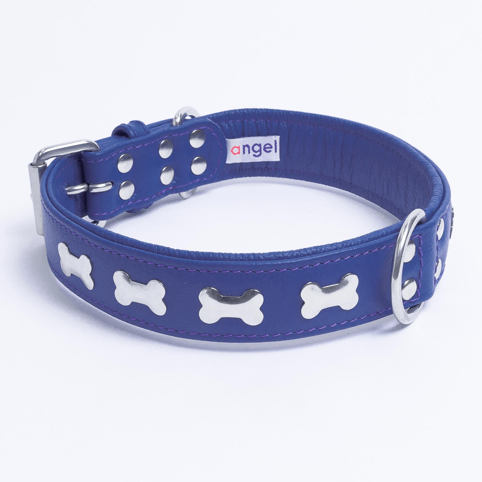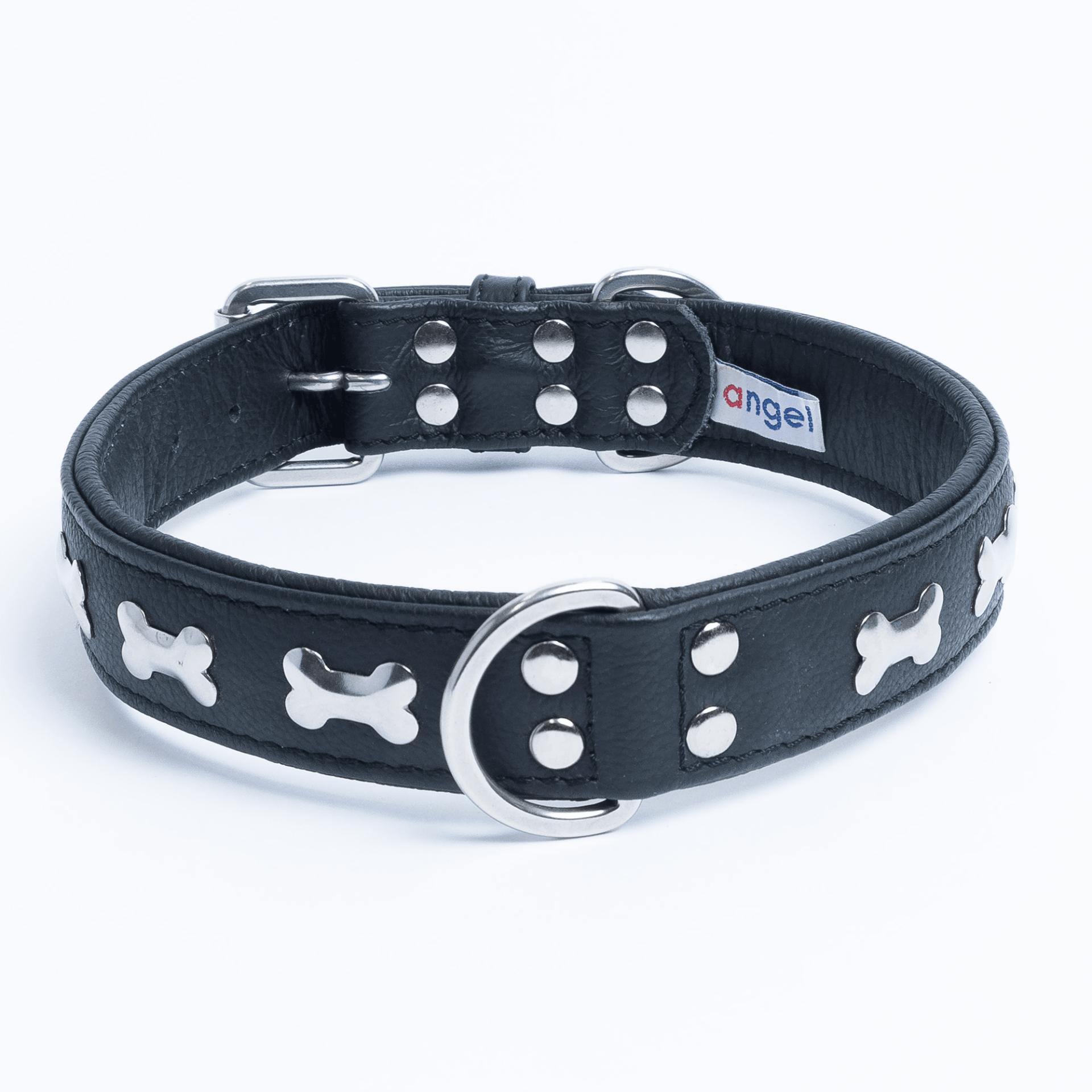 Accent your dog with this classic metal bone- fitted collection. Perfect for any breed, small or large, male or female. Constructed with a centre d-ring for maximum control and exposure, this collection ranks as one of our best sellers. Made from super soft genuine leather and stainless steel hardware.