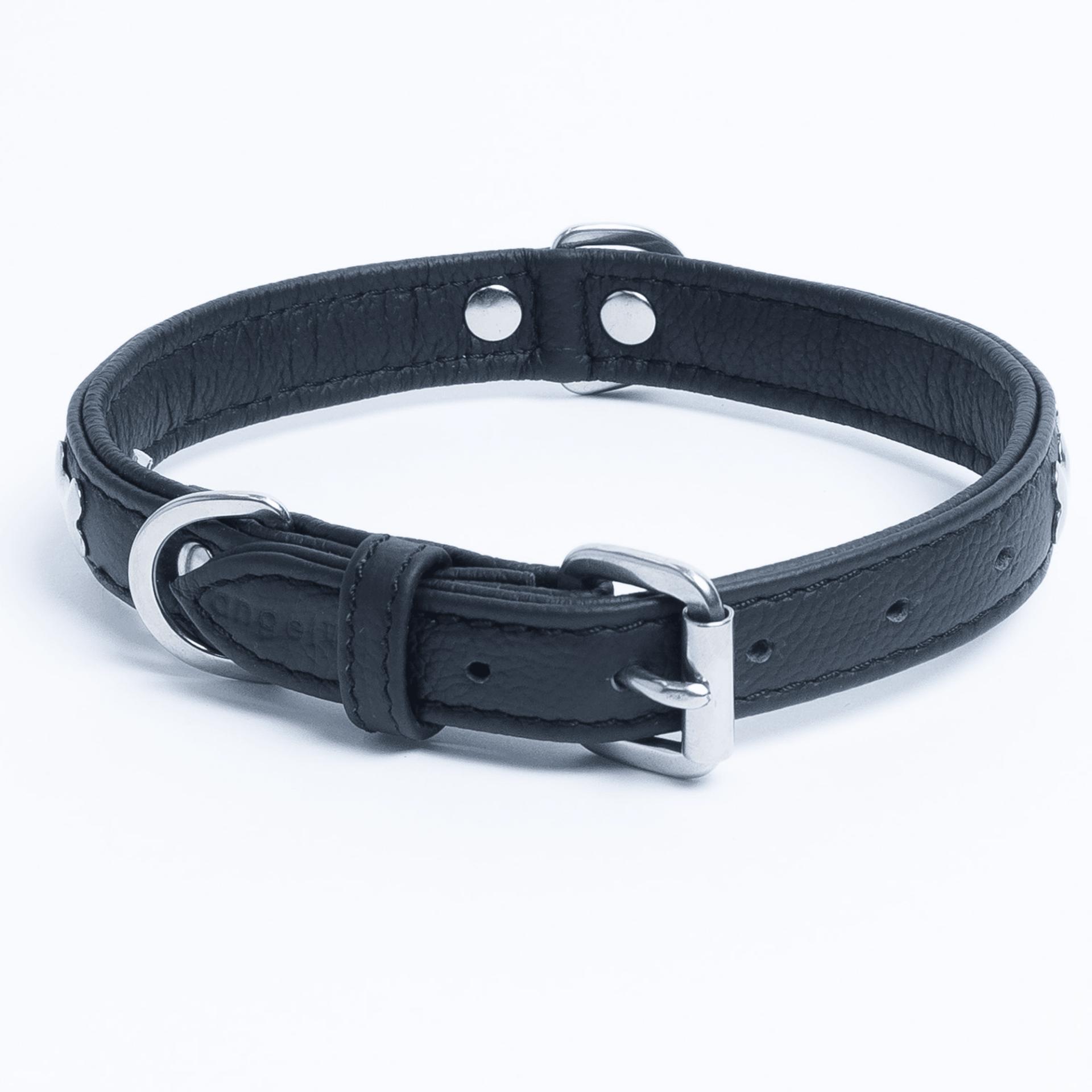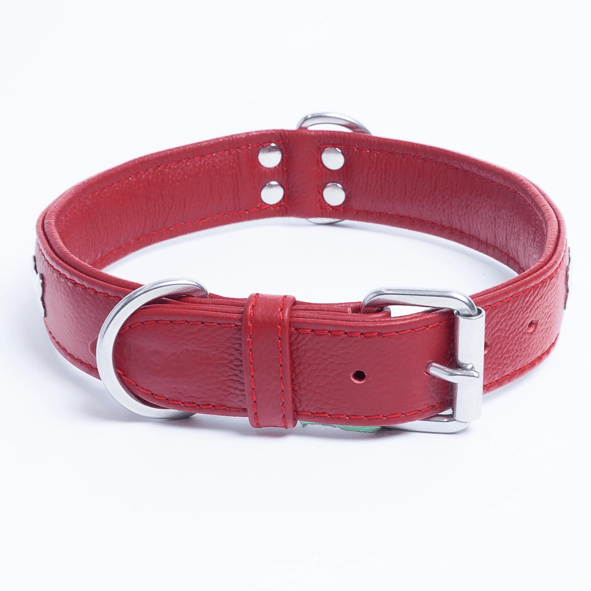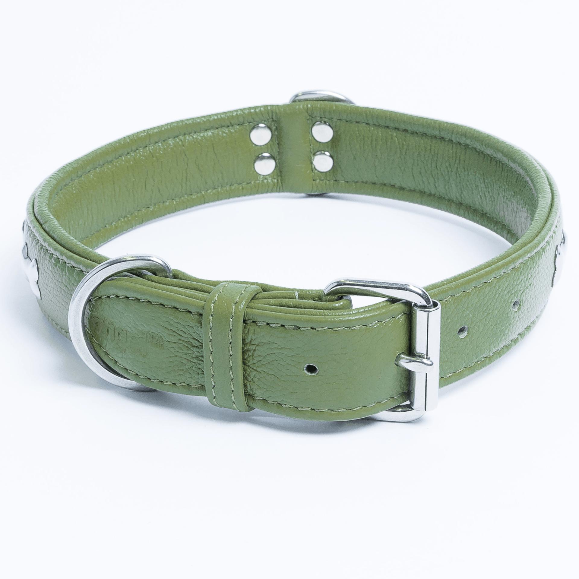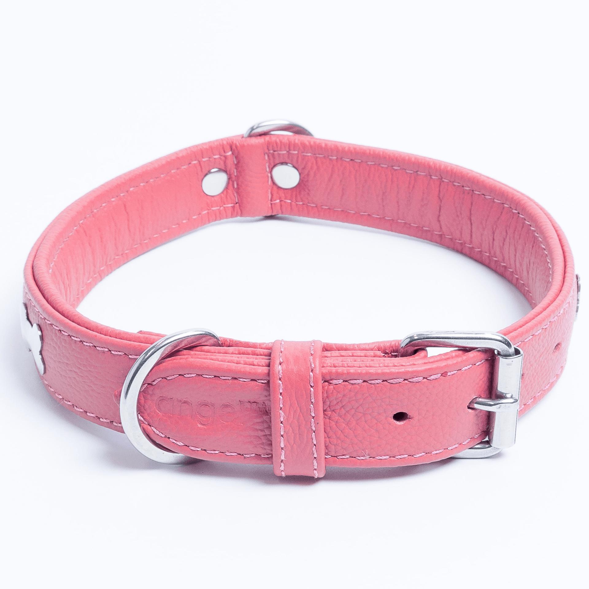Accent your dog with this classic metal bone- fitted collection. Perfect for any breed, small or large, male or female. Constructed with a centre d-ring for maximum control and exposure, this collection ranks as one of our best sellers. Made from super soft genuine leather and stainless steel hardware.