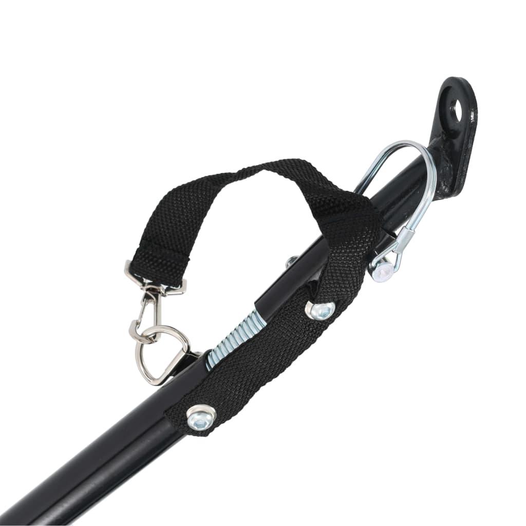 This pet bike trailer has a sturdy steel frame and is made of oxford fabric, which makes it water resistant, durable and easy to maintain. Its mesh windows on both sides allow for maximum air circulation, while the front and back offer dual entry for added convenience. The pet bike trailer has a suspension for a smooth ride and a front wheel that can swivel 360 degrees for strolling. The safety rotating joint ensures that the trailer will remain upright if the bicycle falls over. The base is reinforced with a special lining which is non slip and moisture resistant. The pet bike trailer has a quick release hitch for easy attachment to a bike. This dog trailer can be folded to save space when not in use. It is easy to assemble.